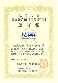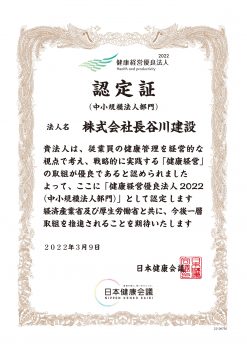 一、社員皆の心と体が健康で、安心して仕事が出来る企業を目指します。